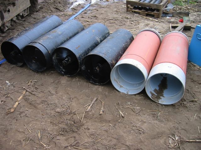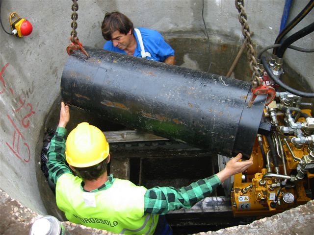 A perfuração é na primeira fase dirigida por tedolito por meio de um tubo piloto, e que, empurrando um invólucro de trado e tubo.