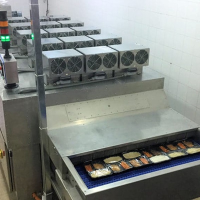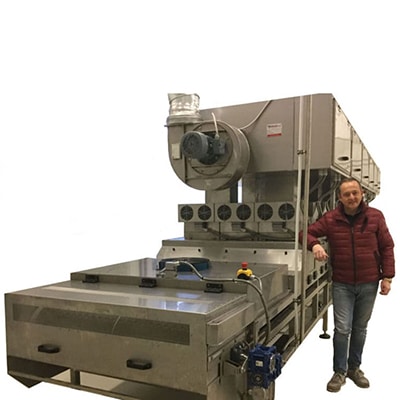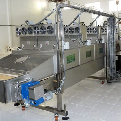 Esterilização de pinhões com micro-ondas e ar frio (10 a 40 kW)